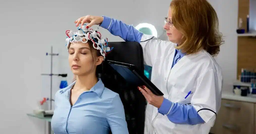 Eletroencefalograma (EEG): Exame que registra a atividade elétrica do cérebro, auxiliando no diagnóstico de epilepsia, distúrbios do sono e alterações neurológicas.